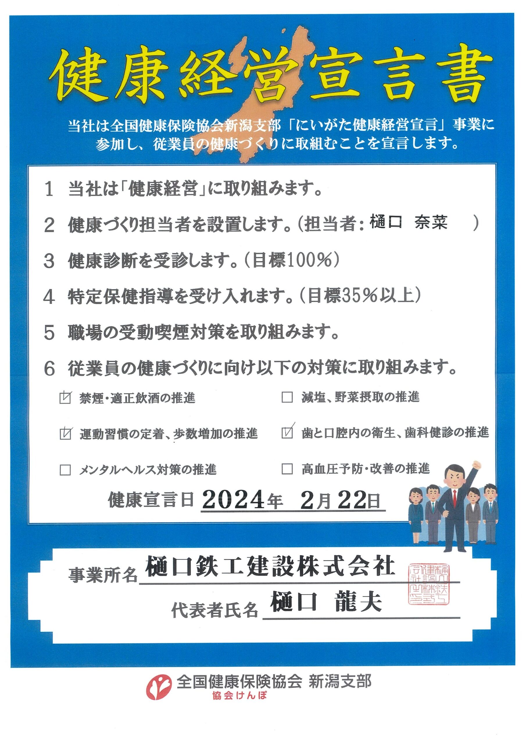 「歯と口腔内の衛生、歯科健診の推進」を掲げて従業員の健康づくりに取り組むことを宣言してまいりました。